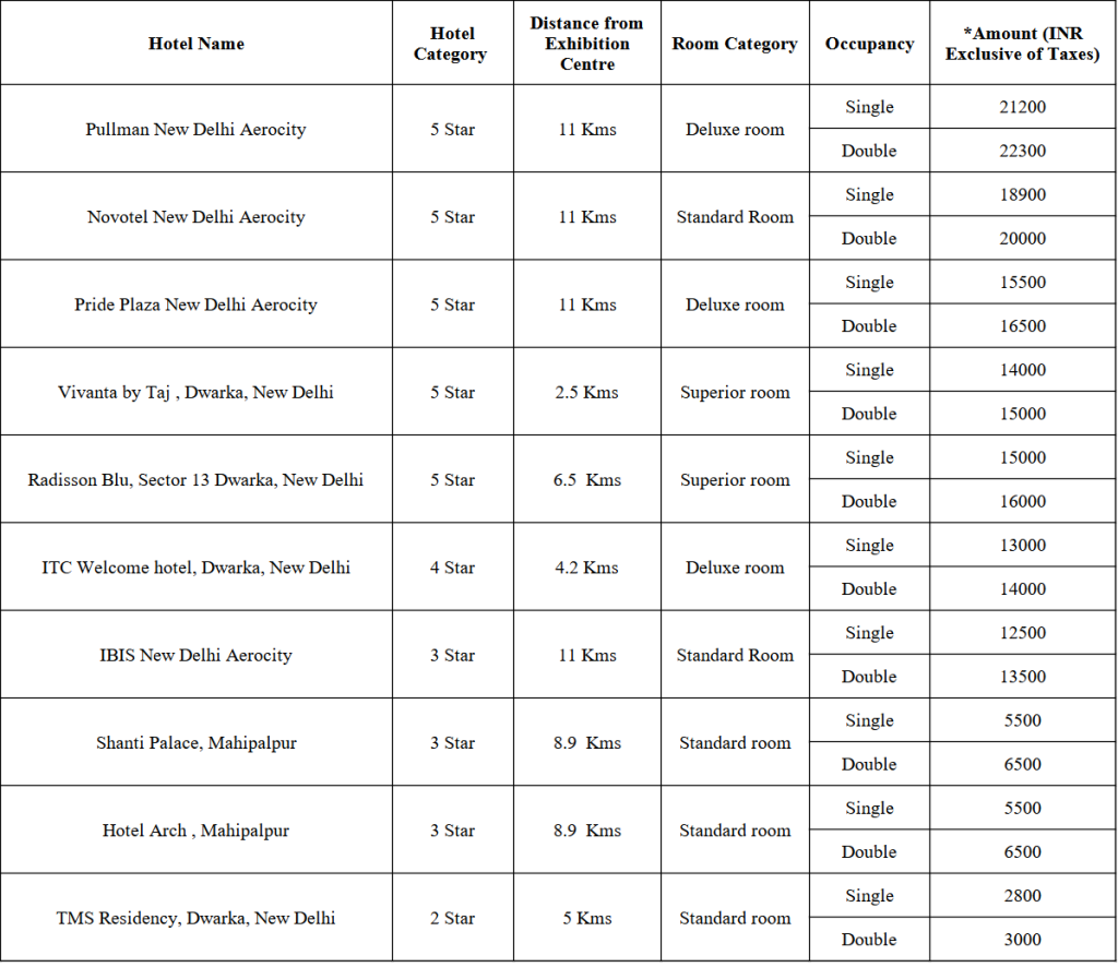In an endeavor to make your stay during TIESS, DIDAC INDIA & DIDAC SKILLS 2025 memorable and comfortable, special packages have been worked out with premier hotels in the city.